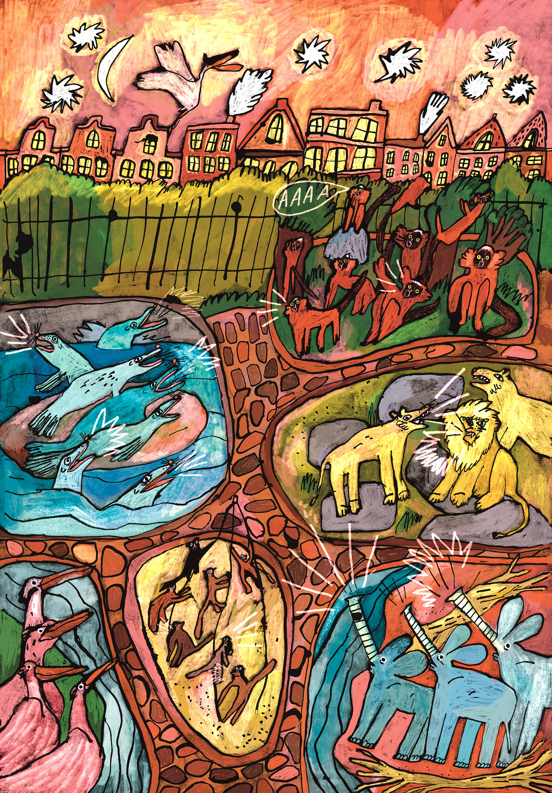 Illustratie en animatie voor Het Parool bij een artikel over de geluiden over de dieren produceren en de buren die geen wekker nodig hebben// Oktober 2025