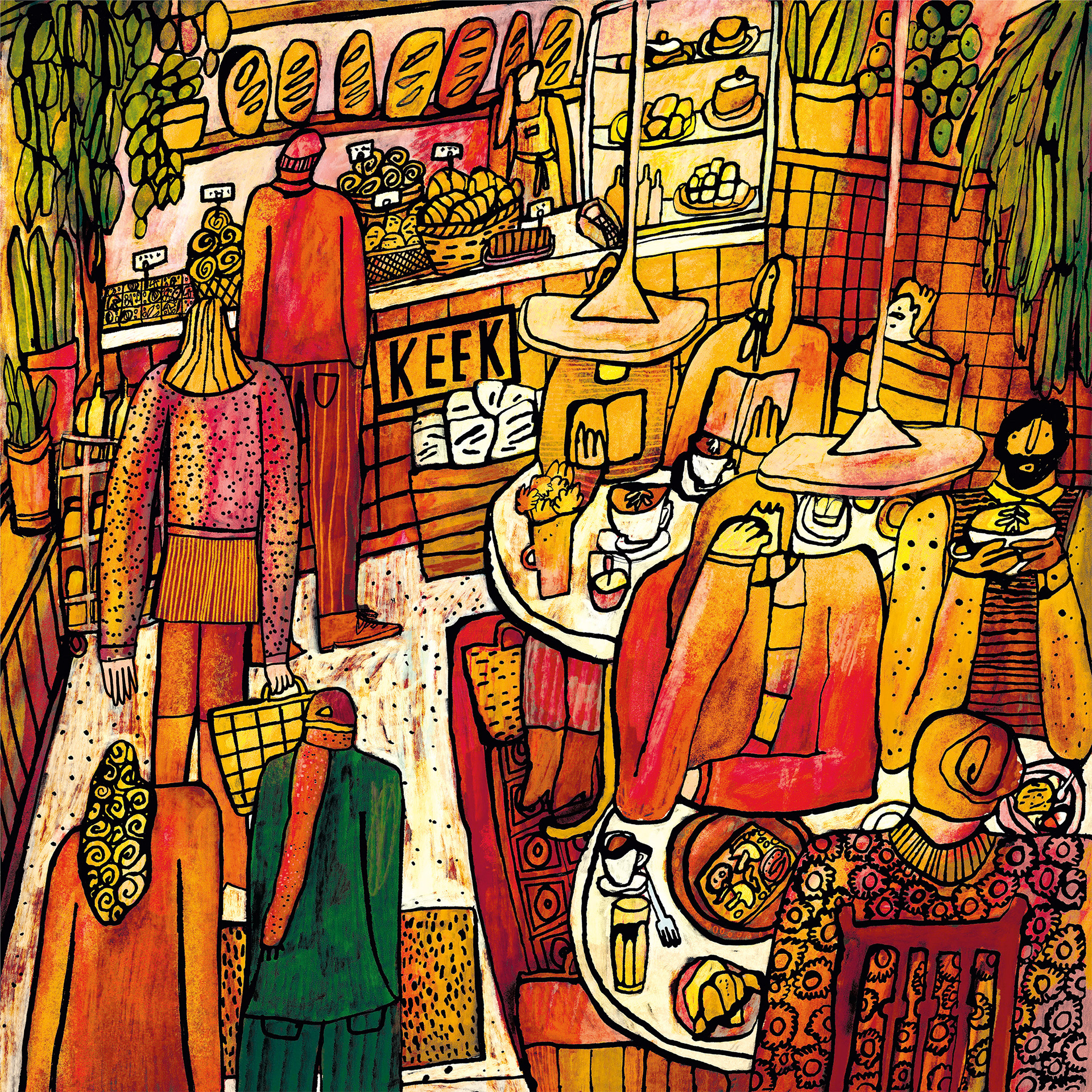 ILLUSTRATIE VOOR KEEK, EEN SFEERBEELD DAT GEZELLIGHEID, DUURZAAMHEID EN HET THUISKOMEN VASTLEGT · DECEMBER 2025