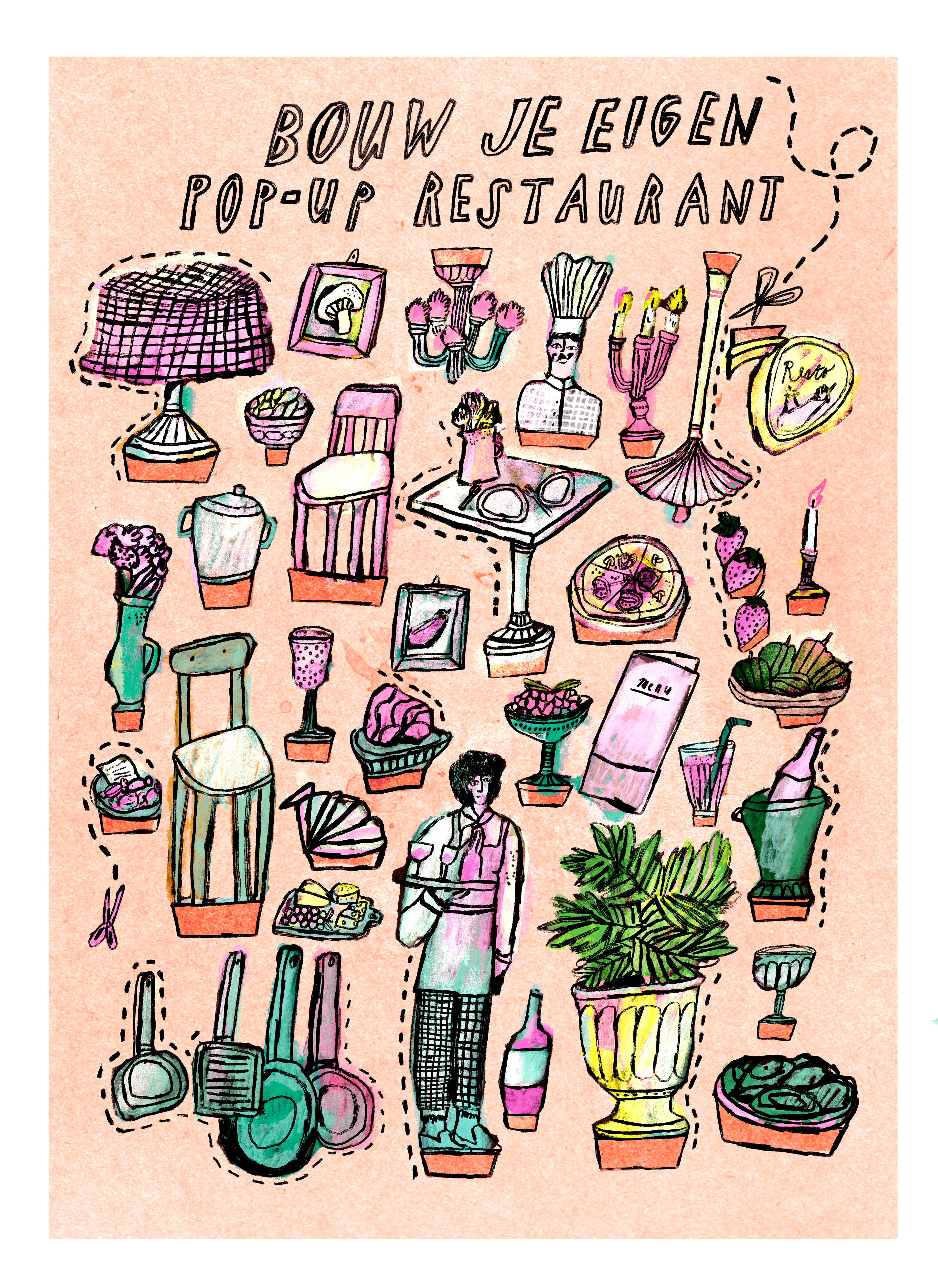 ILLUSTRATIES VOOR HET PAROOL OVER HET GROTE AANTAL POP-UP RESTAURANTS IN AMSTERDAM • MAART 2026