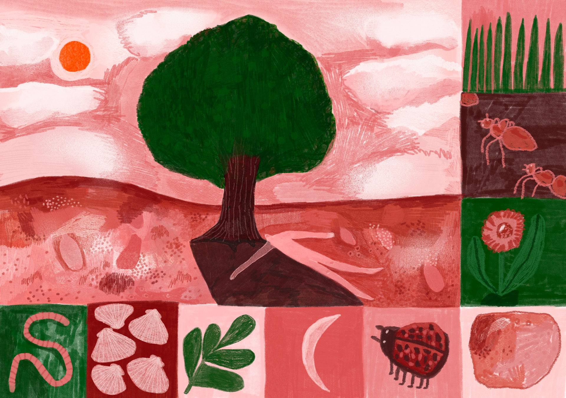 ILLUSTRATIE BIJ HET ESSAY ‘PERFECT DAYS: OVER RITME EN ONTWAKENDE SCHOONHEID’ DOOR DARIA RIZVIC VOOR HARD//HOOFD · MEI 2024