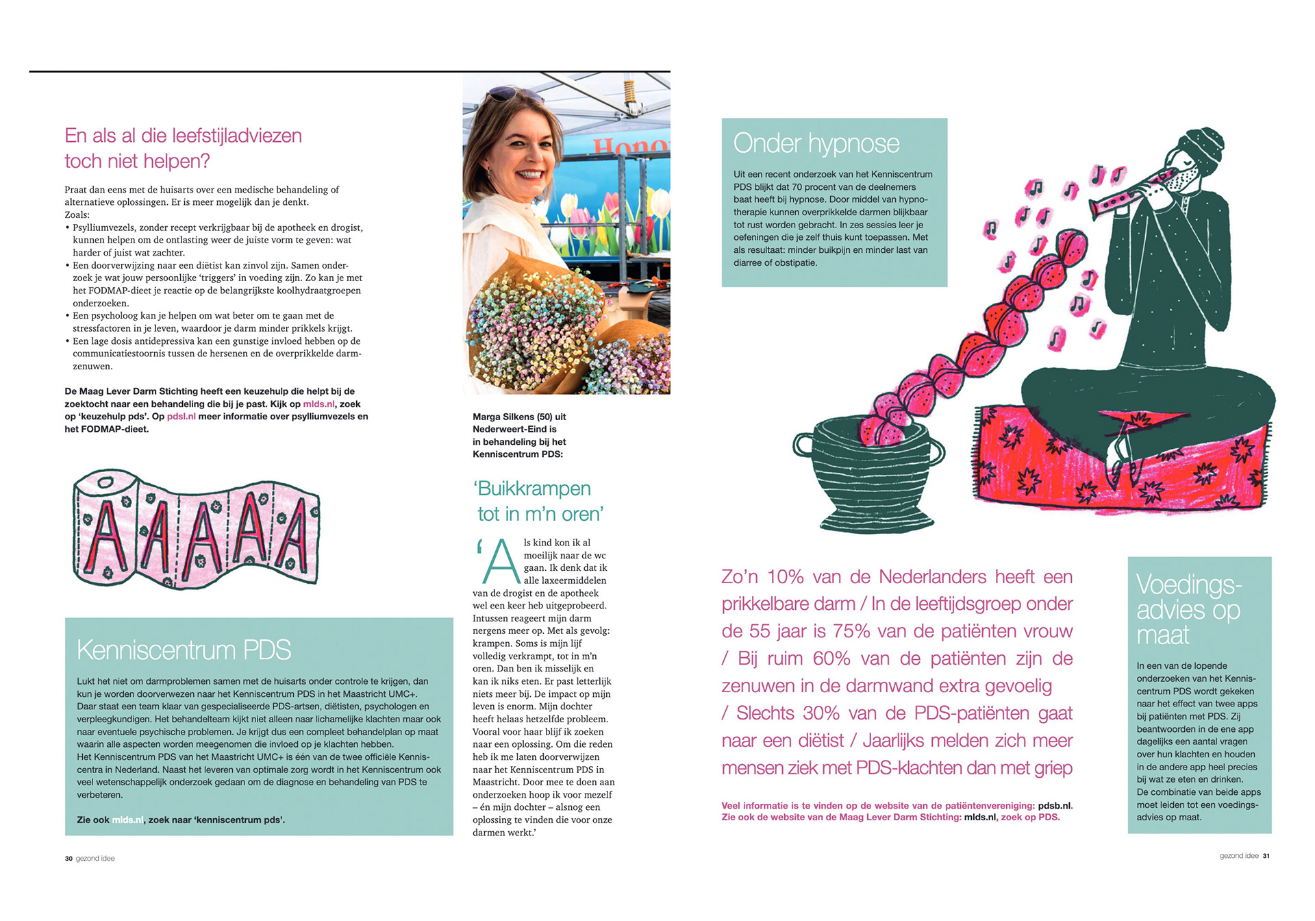 ILLUSTRATIES BIJ EEN ARTIKEL OVER DE PRIKKELBARE DARM IN HET MAGAZINE GEZOND IDEE VAN HET MAASTRICHT UMC+/ SEPTEMBER 2023
