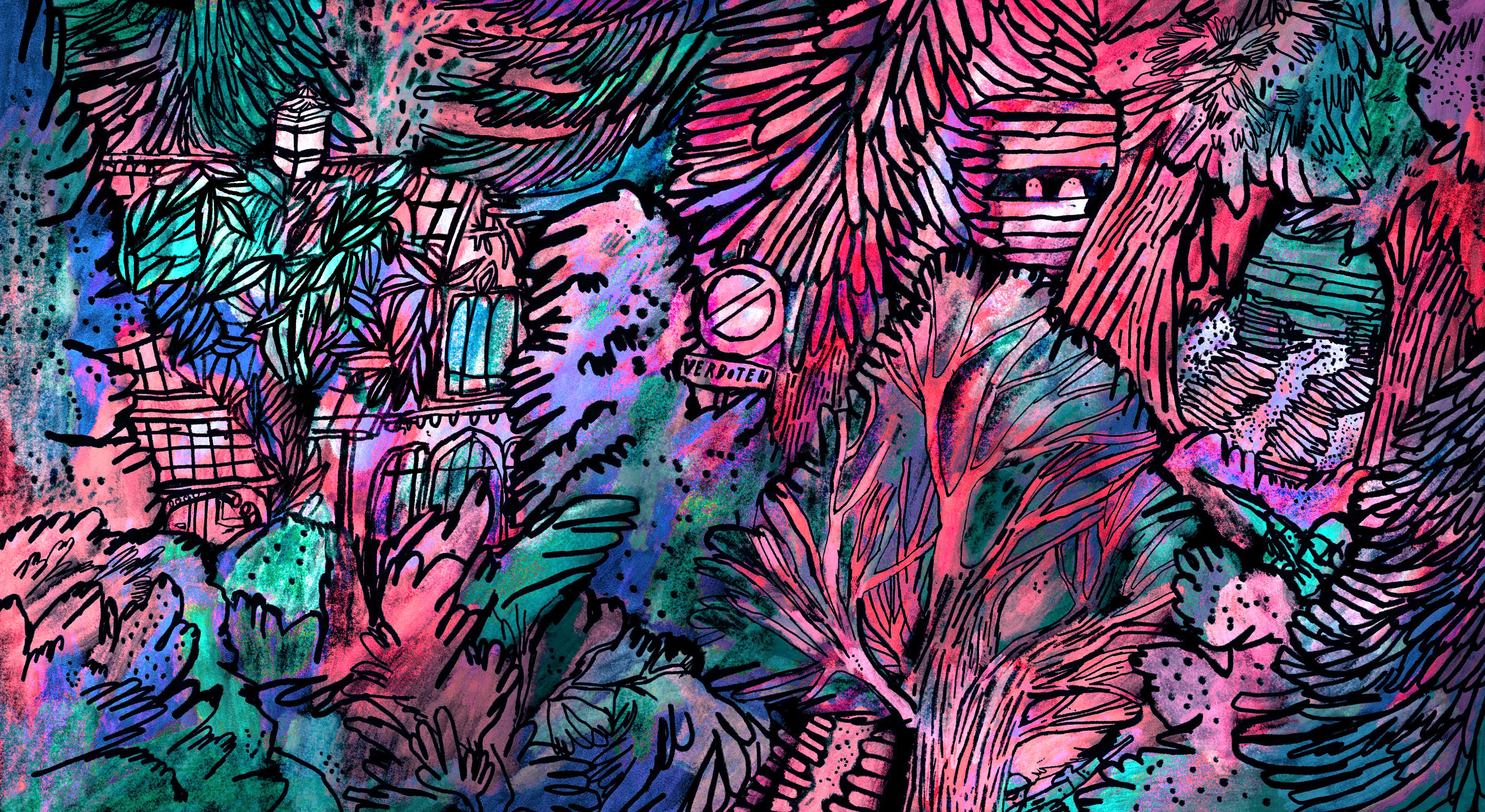 ILLUSTRATIE BIJ HET VERHAAL OEFENGEBIED VOOR ILFU, OVER EEN GEZIN OP VAKANTIE NAAST EEN OEFENGEBIED VAN DEFENSIE • JANUARI 2026