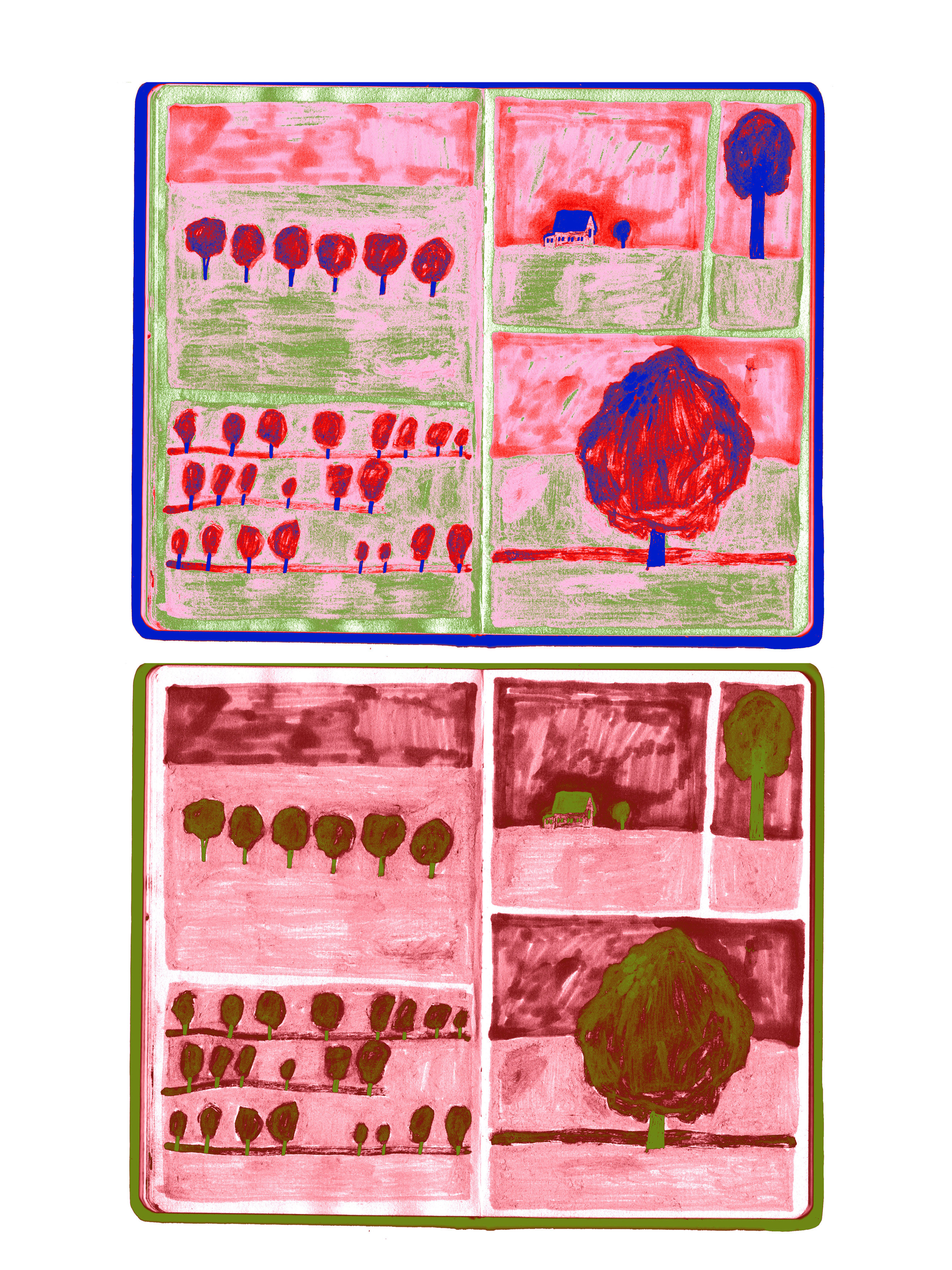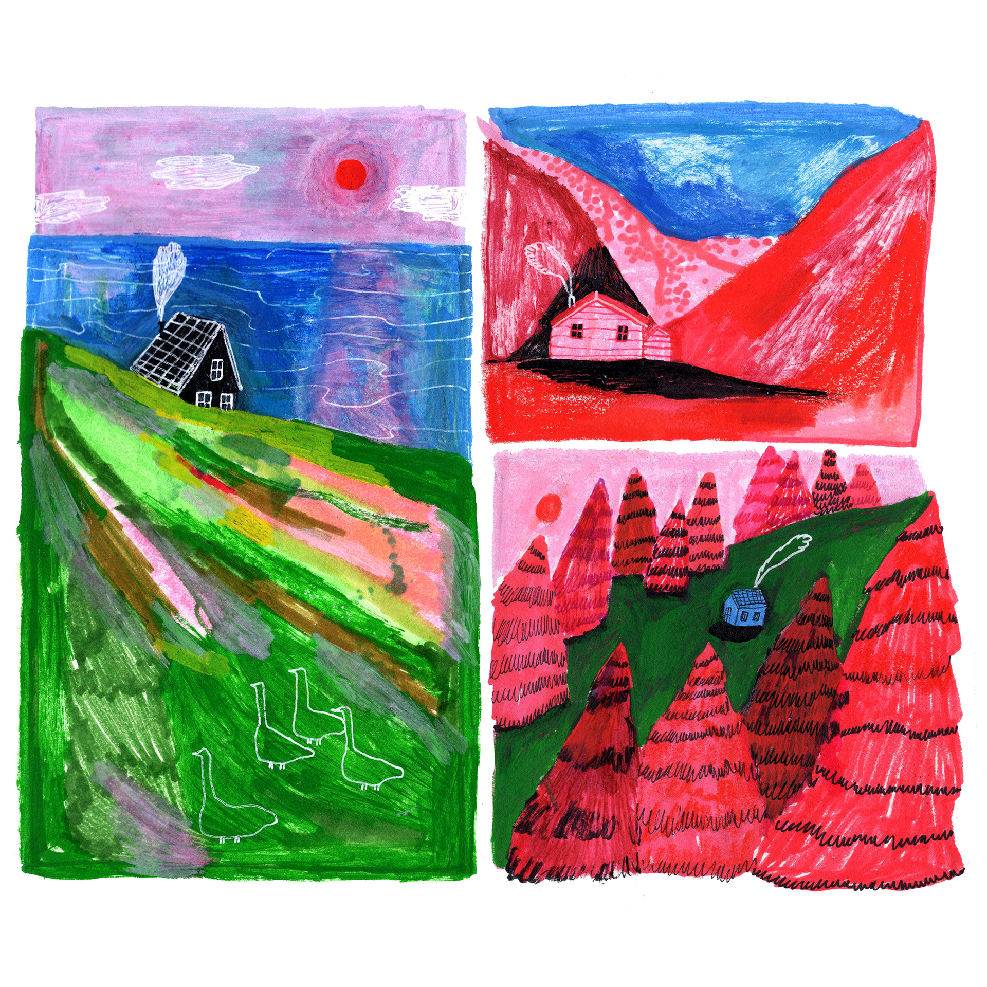 ILLUSTRATIE VAN THUISJES, ACRYLSTIFT EN INKT · FEBRUARI 2024