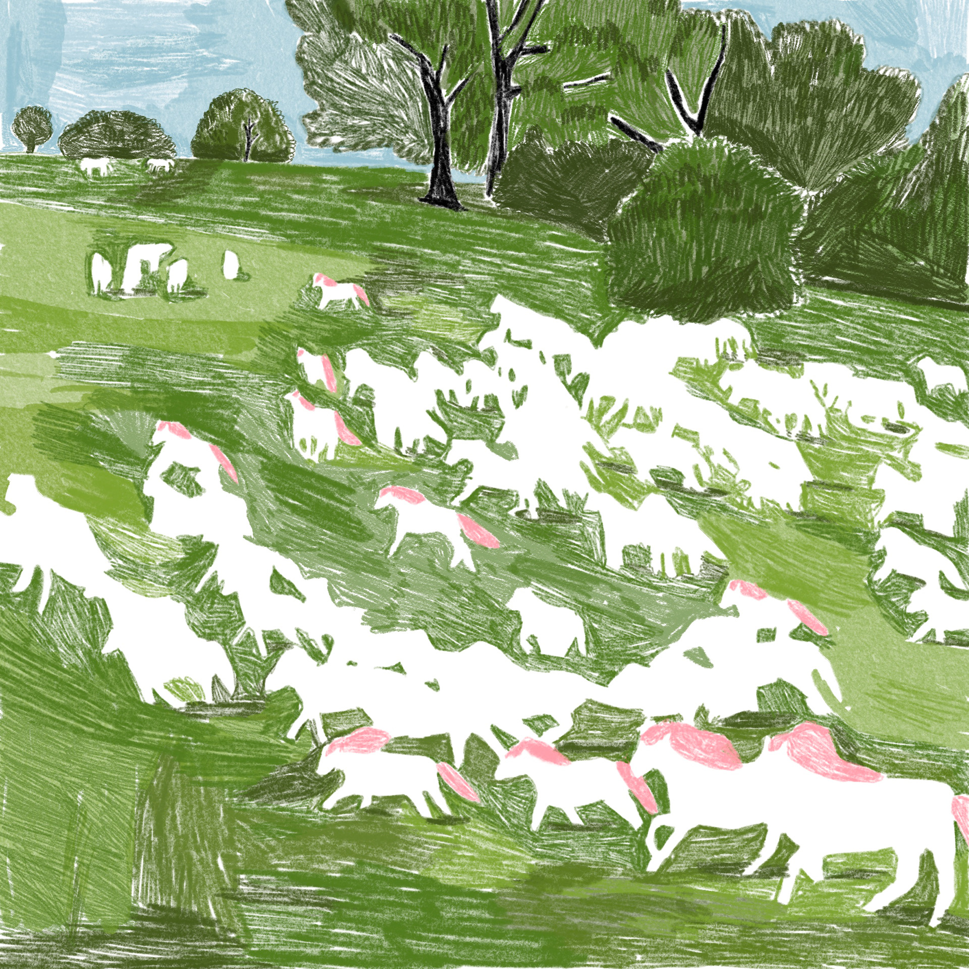 ILLUSTRATIE VOOR MIJN INKTOBER IN SAMENWERKING MET HARD//HOOFD, MET GALOPPERENDE PAARDEN · OKTOBER 2024