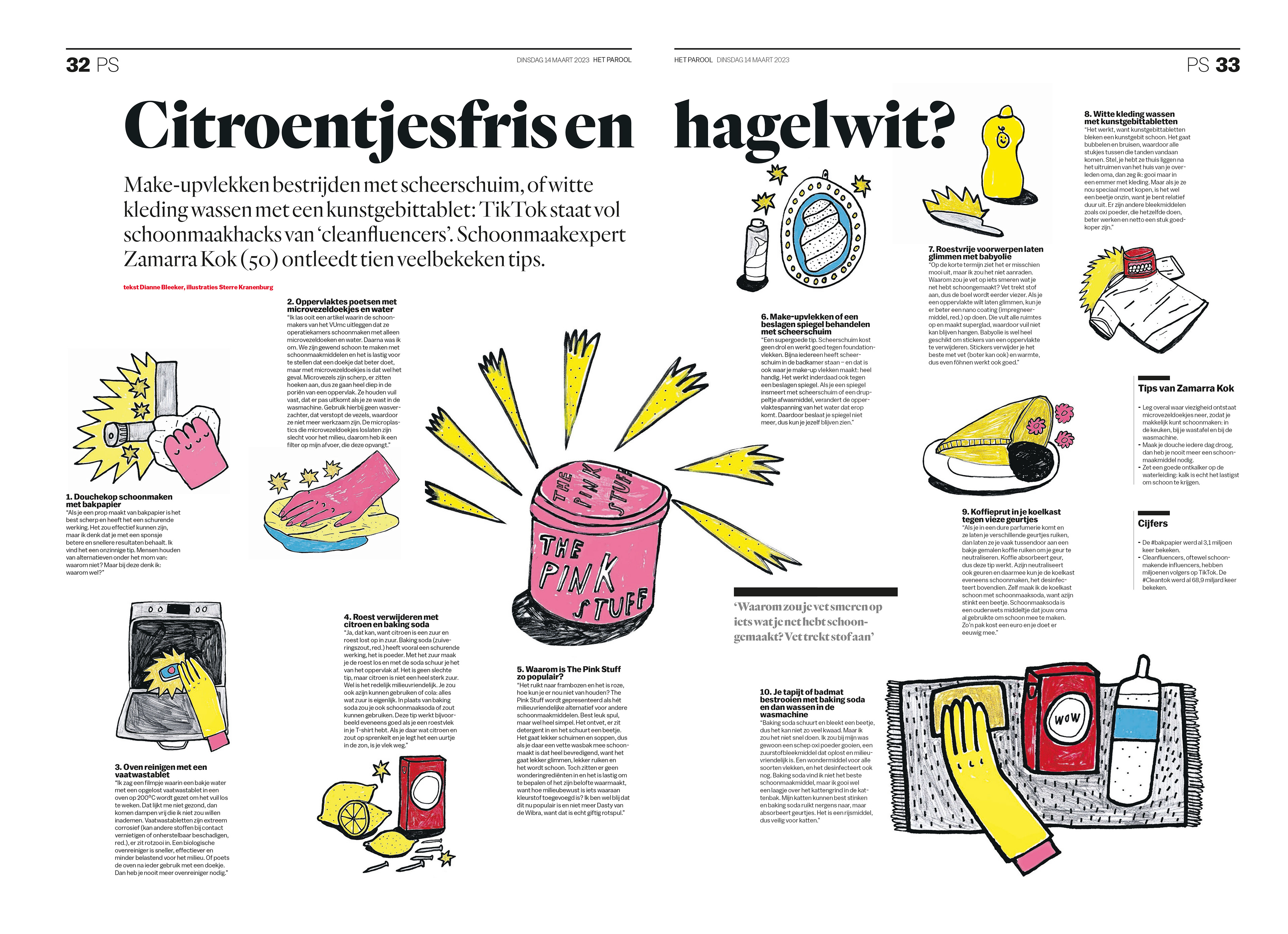 ILLUSTRATIE VOOR HET PAROOL BIJ EEN ARTIKEL OVER CLEANFLUENCERS · FEBRUARI 2023