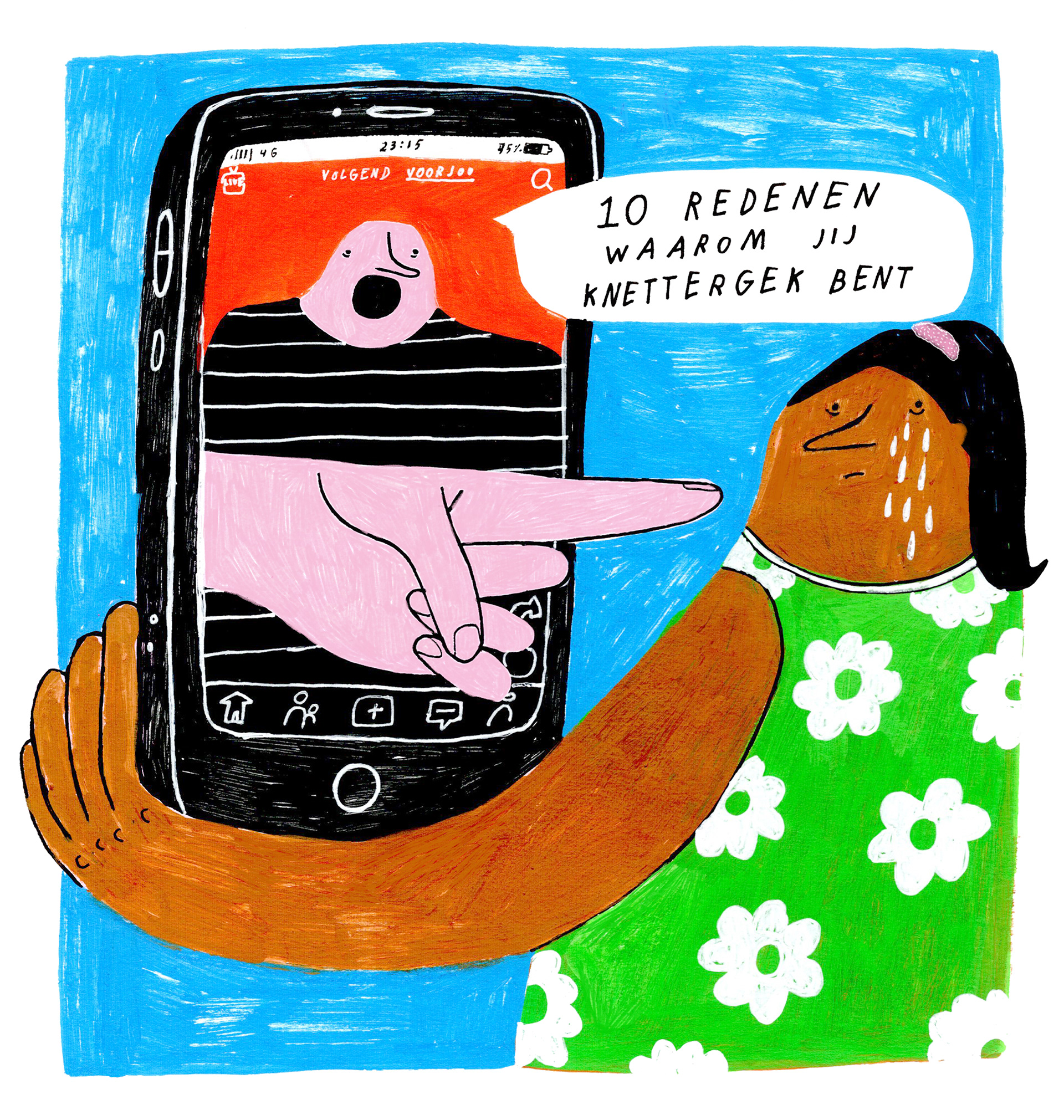 ILLUSTRATIES VOOR HET PAROOL OVER JEZELF DIAGNOSTISEREN VIA TIKTOK-FILMPJES · FEBRUARI 2023